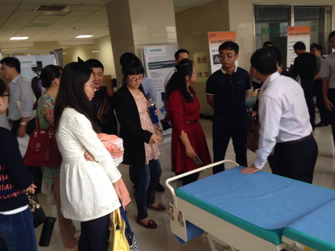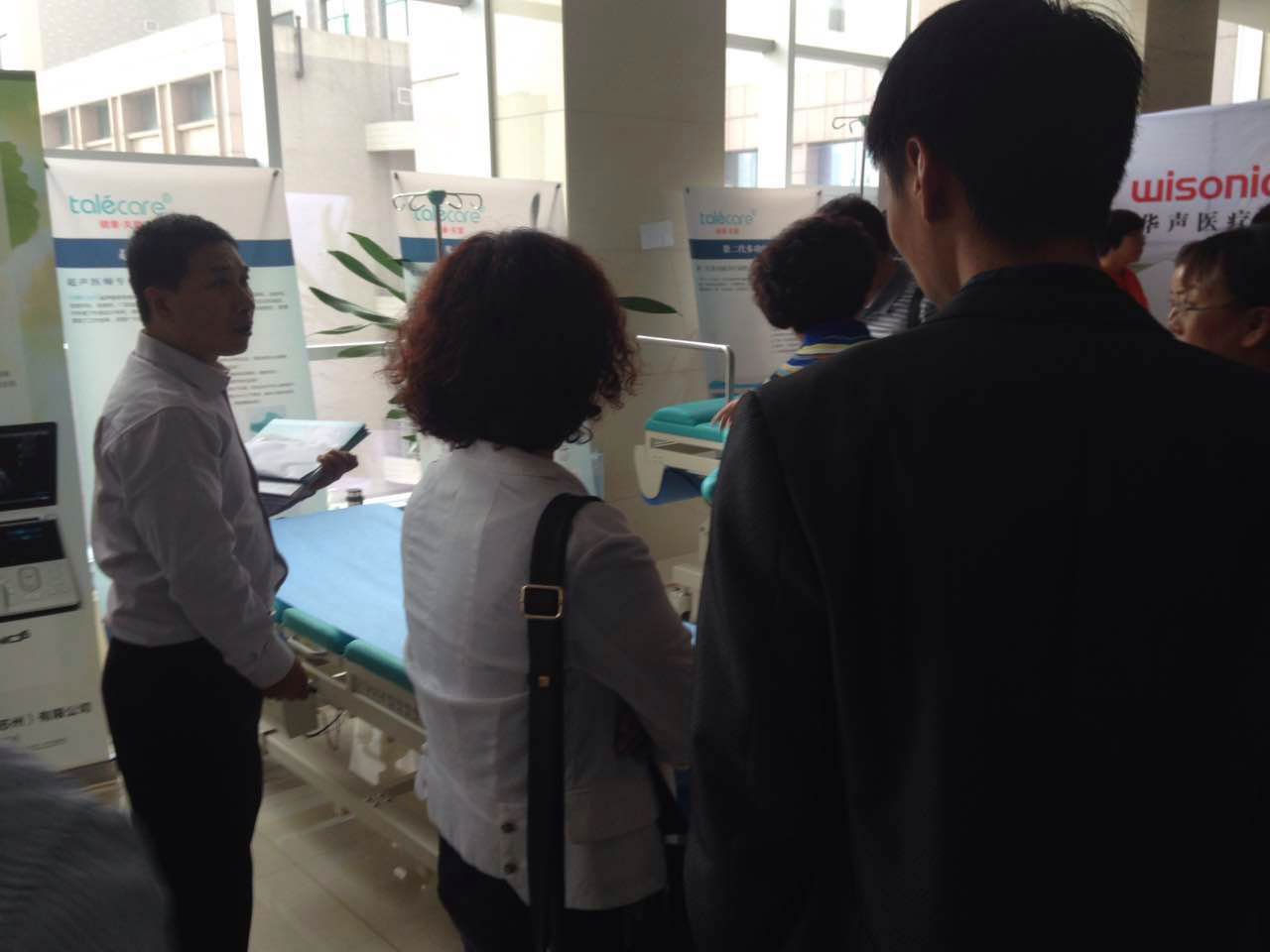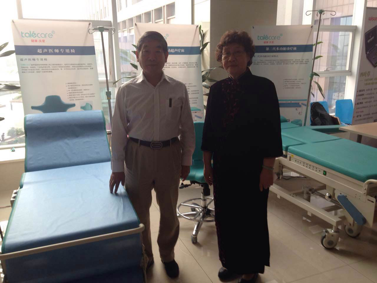 圖四:北京人民大學(xué)醫(yī)院超聲科李建國主任和山西工程學(xué)會(huì)雷成功主任蒞臨泰樂康展位指導(dǎo)工作并合影留念。